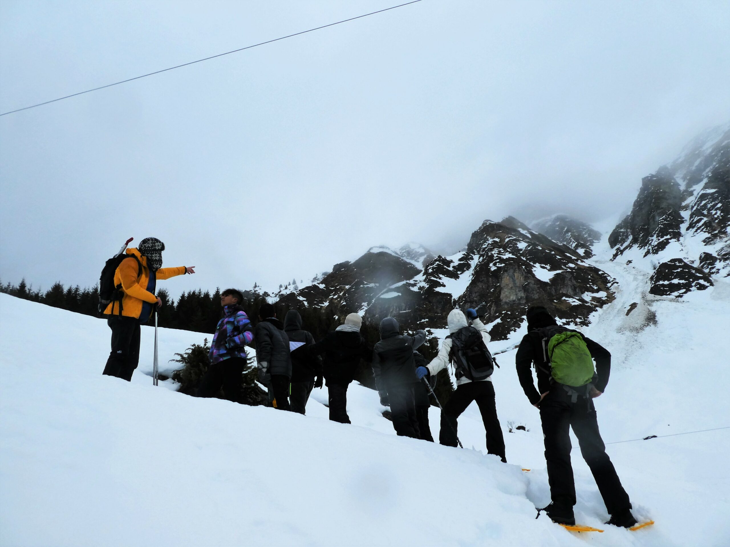L'après-midi nous nous intéressons au métier d'animateur nature avec l'association Education Environnement 64 lors d'une randonnée en raquettes sportive, éducative et ludique!