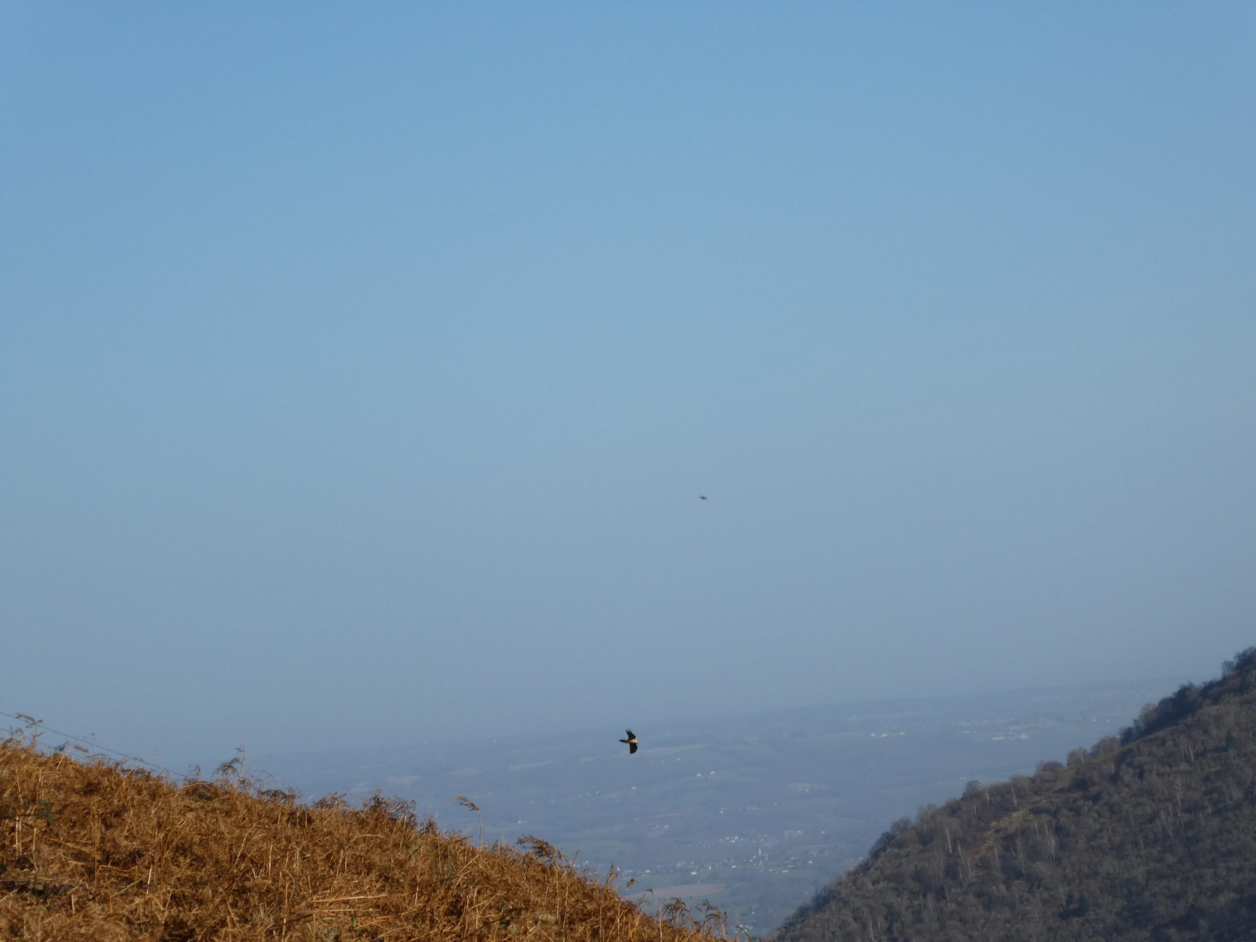 Nous avons passé l'après-midi sur le plateau du Bénou, depuis lequel nous avons pu admirer un splendide panorama de la vallée. Vautours fauves, faucon crécerelle, milans royaux ont été au rendez-vous, le gypaète barbu nous a même fait la surprise.