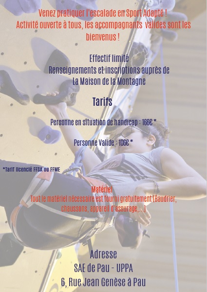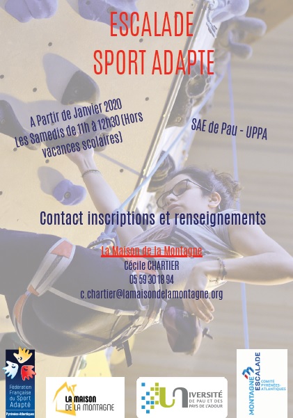 La Maison de la Montagne s’associe au comité du Sport Adapté (CDSA 64) et à la Fédération Montagne Escalade (FFME 64) pour ouvrir une section escalade destinée aux personnes en situation de handicap mental.