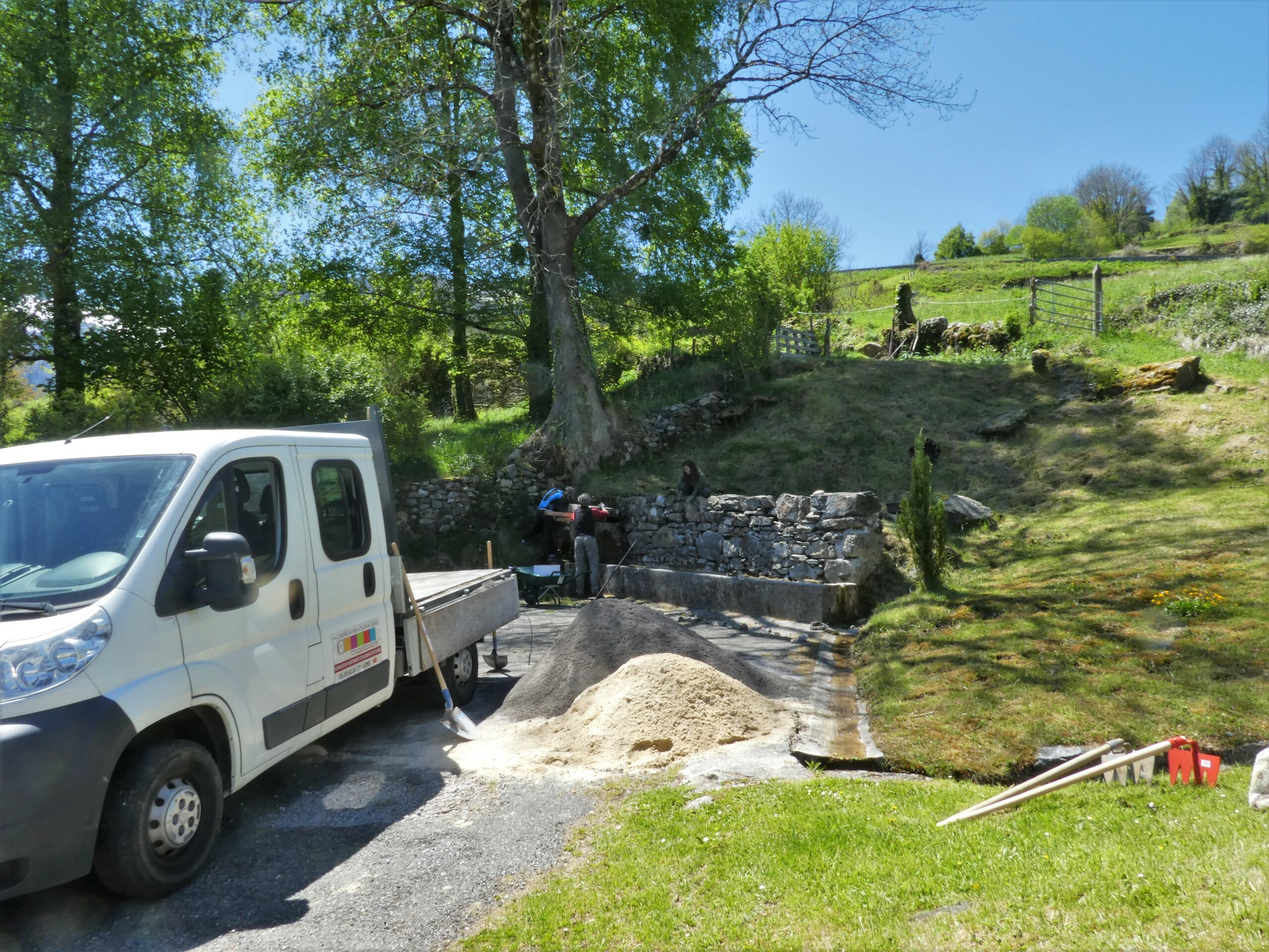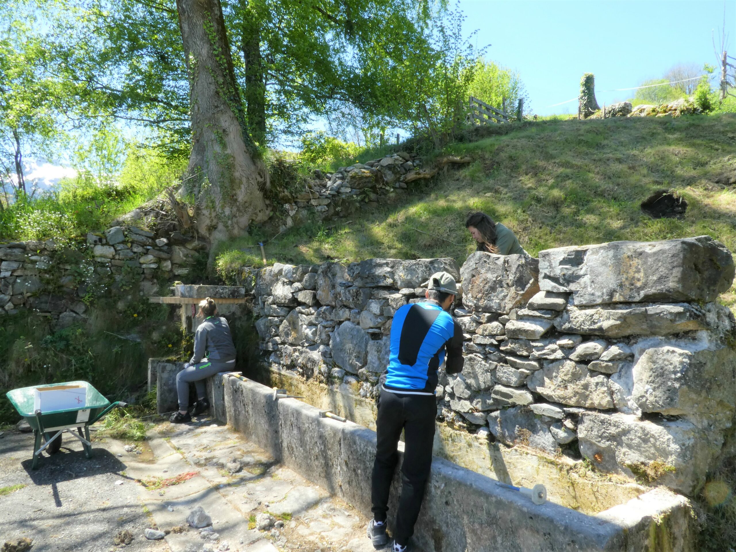 Ça y est, le chantier Patrimoine et Insertion est lancé sur l'abreuvoir de Brouquets à Bilhères-en-Ossau!